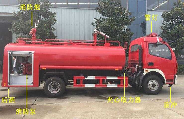 | 主要功能和配量 | 采用東風多利卡雙排駕駛室車型,配備CB10/20型消防泵,PS20型手動控制消防炮,射程≥40米,選配消防器材 |