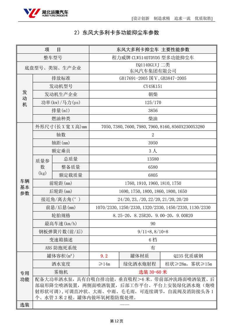 東風(fēng)大多利卡抑塵車(8噸方罐-30-60米-CLW5140TDYD5)