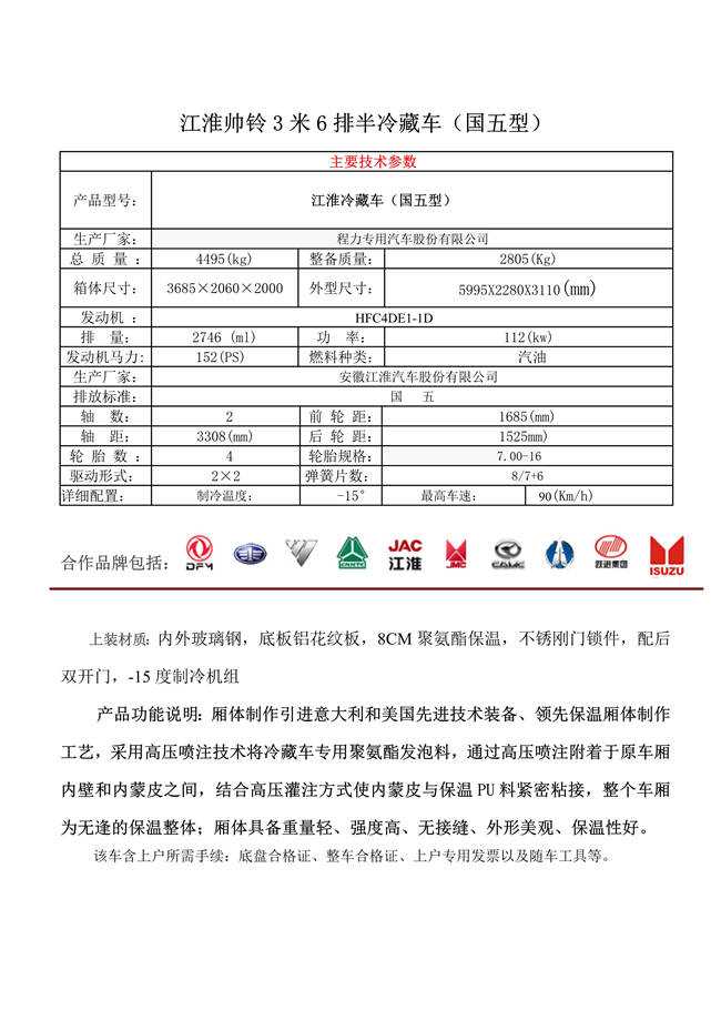江淮帥鈴3米6排半冷藏車(chē)