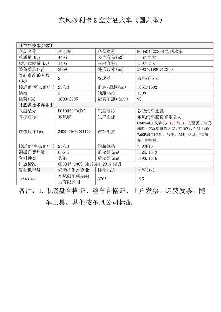 國(guó)六東風(fēng)多利卡2立方灑水車