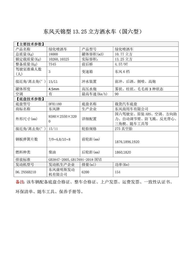 國(guó)六東風(fēng)天錦13.25立方灑水車(chē)